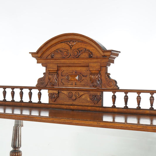 Antique Oak Marble Top Server with Mirrored Back Splash & Spindled Rail C1900