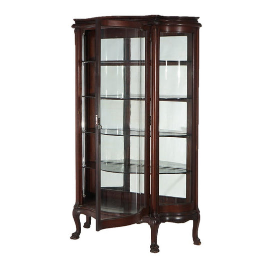 Antique RJ Horner School Mahogany Swell Front China Cabinet, Geo. Flint, C1910