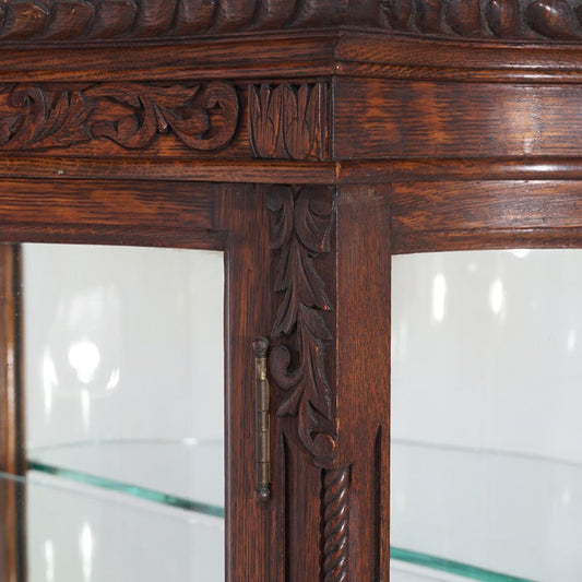 Antique RJ Horner School Carved Oak & Curved Glass Mirrored China Cabinet C1910