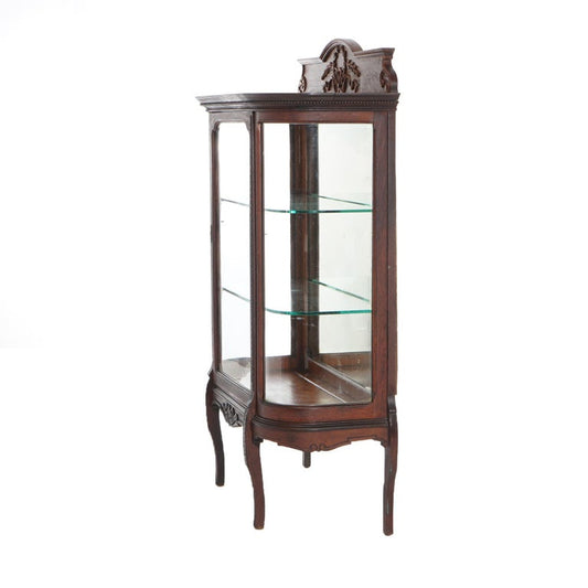 • Antique Second Empire Foliate Carved Mahogany Diminutive China Cabinet C1890