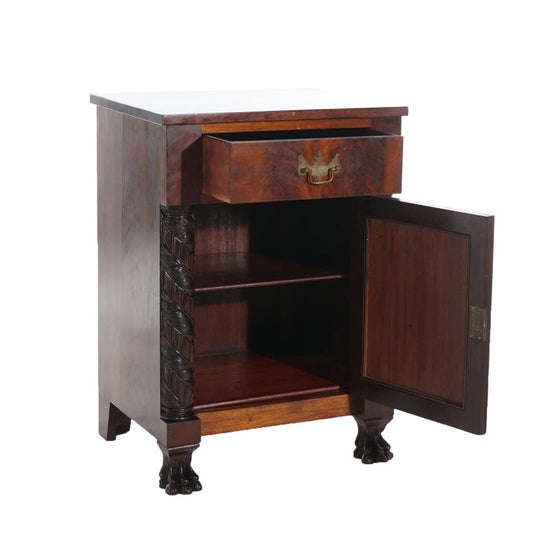 Antique Neoclassical American Empire Foliate Carved Flame Mahogany Stand c1900