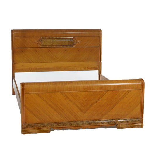 Vintage Waterfall Carved Satinwood Faux Painted Full Size Bed Frame C1940
