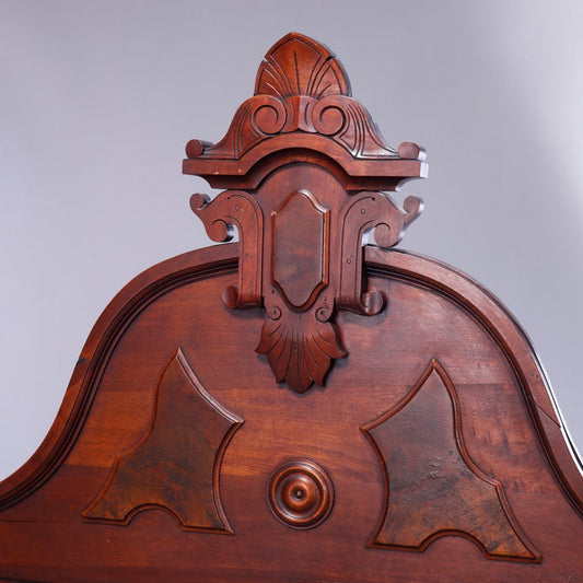 Antique Renaissance Revival Carved Walnut & Burl Bed, Circa 1890