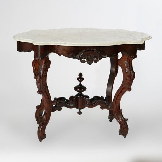 Antique Renaissance Revival Walnut, Rosewood & Marble Parlor Table c1890
