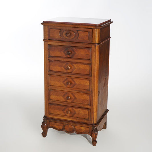 Antique French Louis XVI Carved Walnut, Kingwood & Marble Zinc Lined Chest 19thC