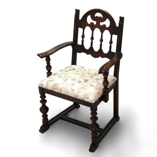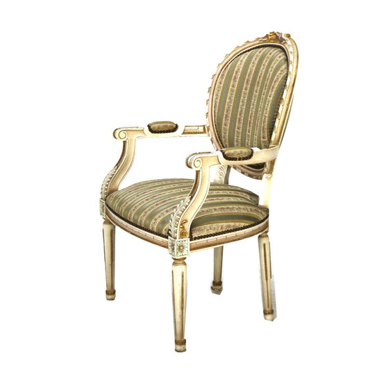 Pair Vintage French Louis XVI Style Polychromed & Upholstered Arm Chairs C1940
