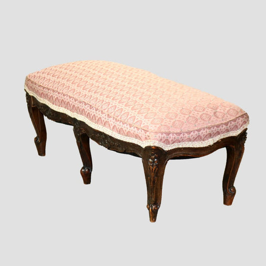 Antique French Louis XV Carved Walnut & Upholstered Stool 19thC