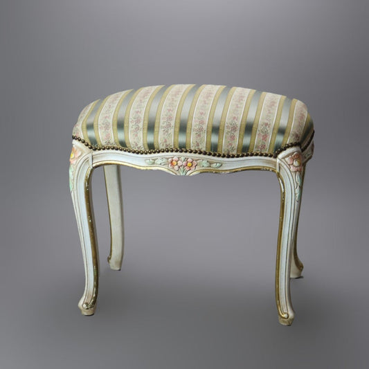 Vintage French Louis XIV Style Polychromed & Upholstered Bench C1940