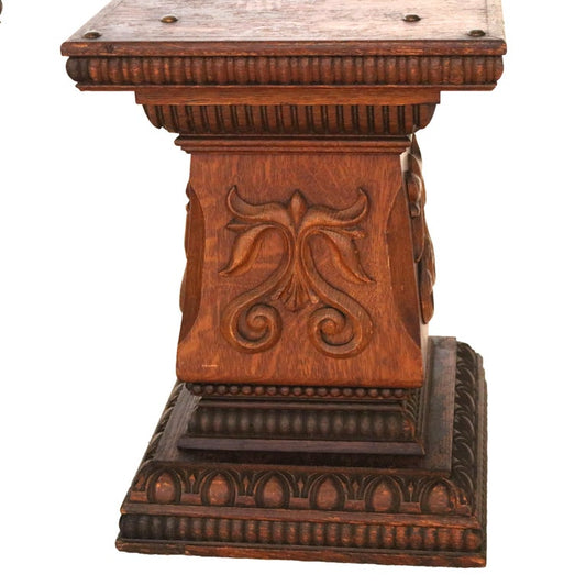 Pair of Antique RJ Horner Attr. Foliate Carved Oak Sculpture Pedestals C1900
