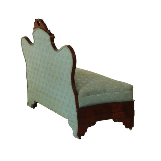 Antique American Empire Carved Flame Mahogany & Upholstered Slipper Bench C1850