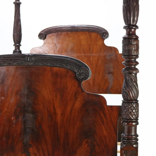 Monumental American Empire Neoclassical Carved Flame Mahogany Poster Bed c1840