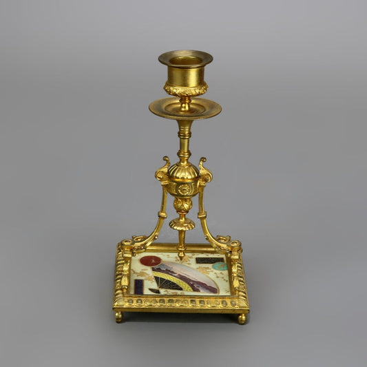 Antique Aesthetic Gilt Bronze Candlestick with Porcelain Tile Base C1880