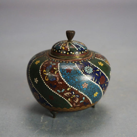 Antique Japanese Cloisonne Floral Enameled Footed Sensor C1920