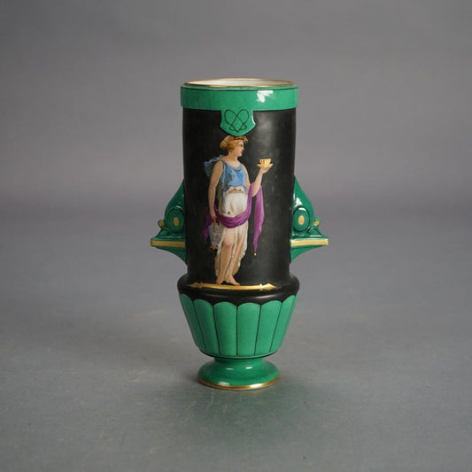 • Antique Old Paris Porcelain Portrait Vase with Classical Figure C1890