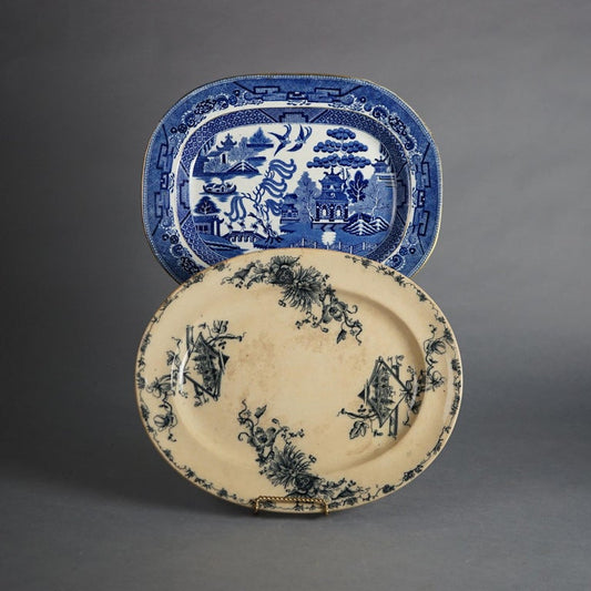• Two Large Antique Canton School Chinese Export Porcelain Platters C1900