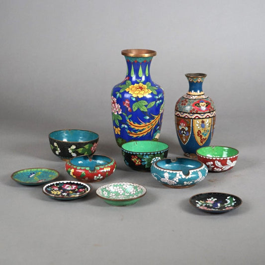 • Twelve Various Chinese Cloisonne Floral Enameled Items C1920