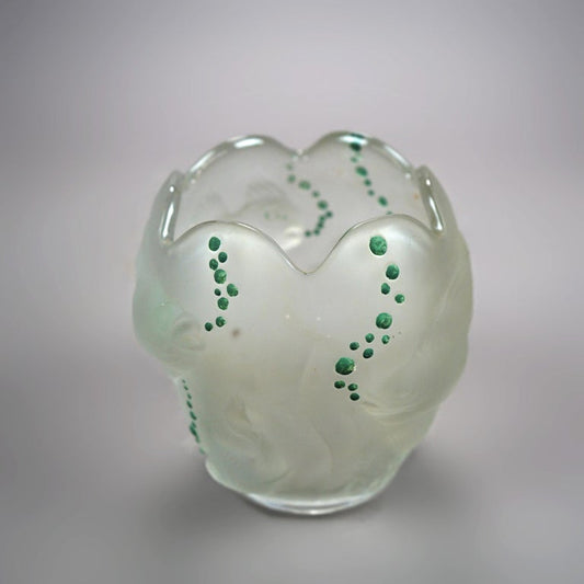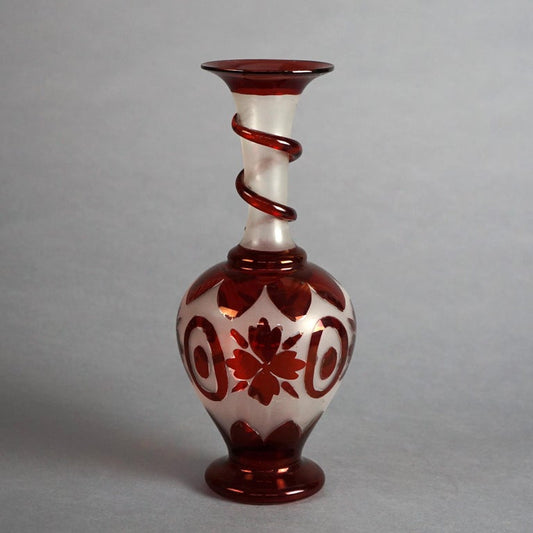 • Antique Bohemian Blown Glass Vase with Flowers & Applied Elements Circa 1900