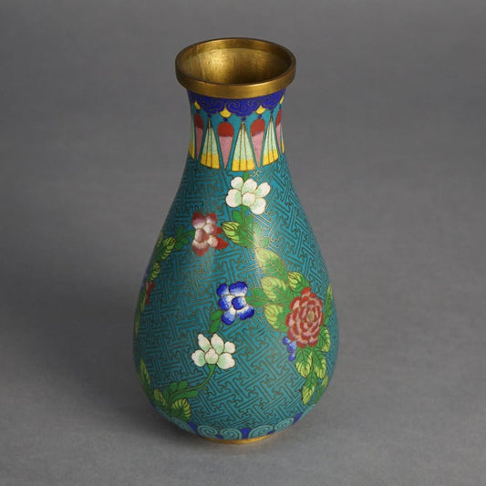 Antique Japanese Meiji Cloisonne Enameled Vase with Flowers C1920