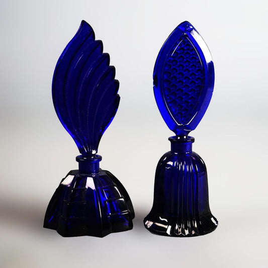 • Aurel Art Deco Cobalt Blue Glass Perfume Bottles with Stoppers C1930