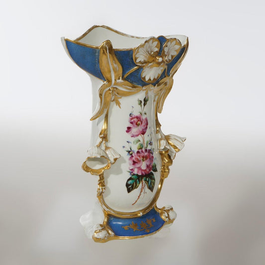 Antique French Blue Old Paris Porcelain Hand Painted & Gilt Floral Vase 19th C