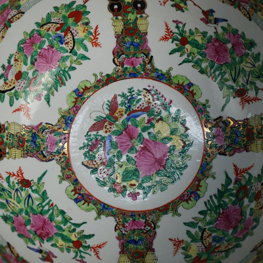 Antique Large Chinese Rose Medallion Porcelain Wash Bowl with Garden Scene 20thC