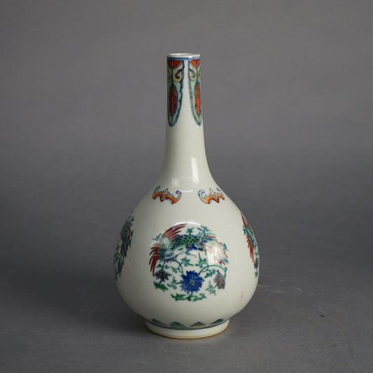 Pair of Chinese Doucai Porcelain Vases with Kangxi Mark & Pheasants 20thC