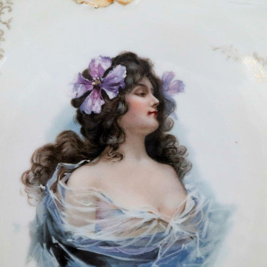 Oversized Prussia Painted and Gilt Portrait Plate of Young Woman, circa 1900