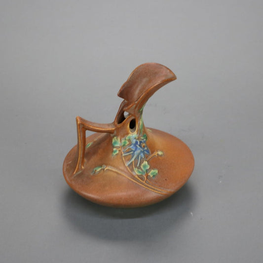Brown Roseville Art Pottery Art Deco Ewer with Columbine Pattern Mid 20thC