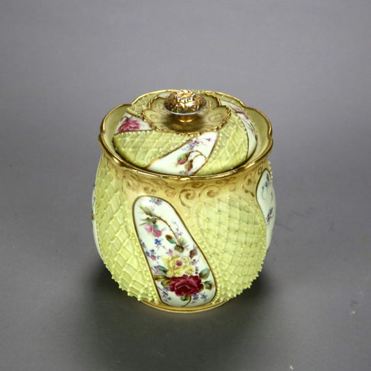 Antique German Rudolstadt Floral & Gilt Hand Painted Porcelain Biscuit Jar c1890