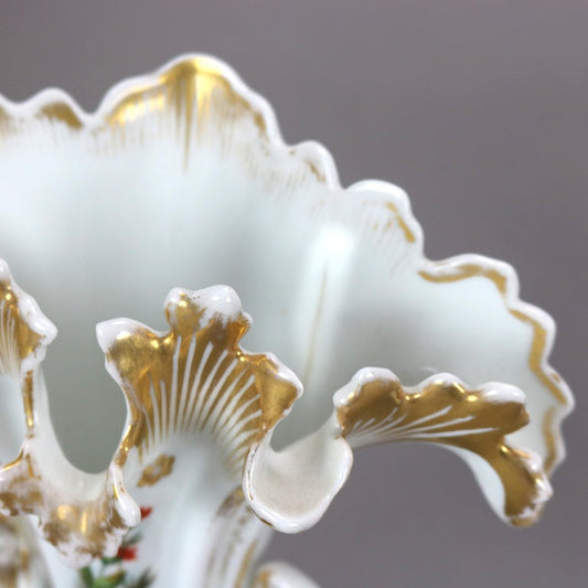 Pair of Antique Old Paris Porcelain Hand Painted Floral & Gilt Spill Vases c1890