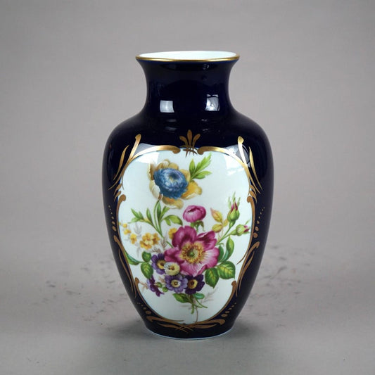Vintage French Limoges Hand Painted & Gilt Porcelain Vase, Floral Reserve, 20thC