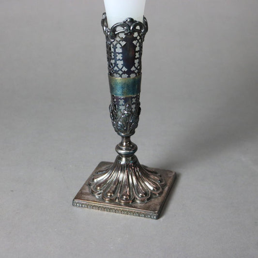 Austrian Loetz School Flared Art Glass Vase with Silver Drape Overlay C1930
