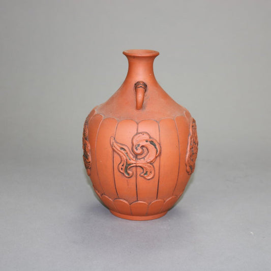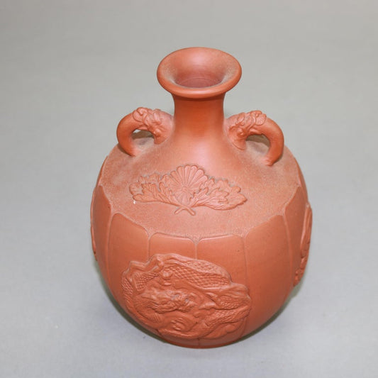 Japanese Embossed Terra Cotta Vase with Dragon & Handles C1930