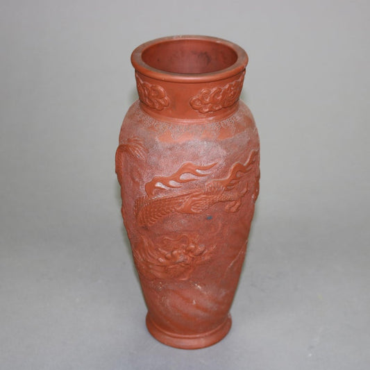 Japanese Embossed Terra Cotta Vase with Dragon C1930
