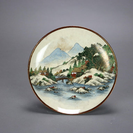 Japanese Scenic Porcelain Compote with Landscape Scene 20thC