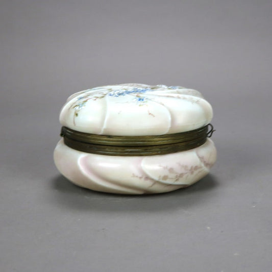 Antique Wavecrest Hand Painted Glass Collar Box with Floral Elements 19thC