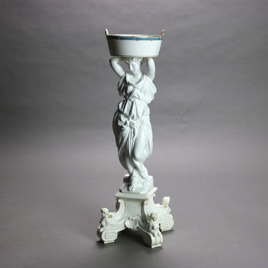 Antique French Neoclassical Blanc De Chine Figural Porcelain Compote C1890