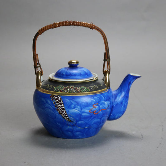 Antique Asian Hand Painted Porcelain Teapot with Dragon, Signed, C1920