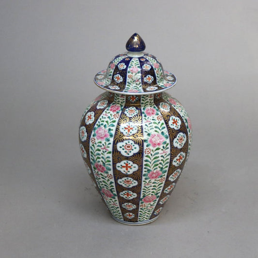 Antique Chinese Meiji Hand Painted and Gilt Porcelain Covered Urn C1930