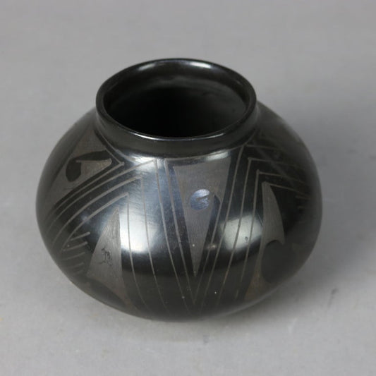 Mata Ortiz Black on Black Nicolas Signed Silveira Pottery Vase C1920