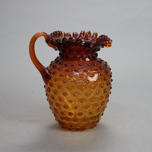 Antique Amberina Fluted Hobnail Art Glass Juice, Iced Tea or Water Pitcher C1890