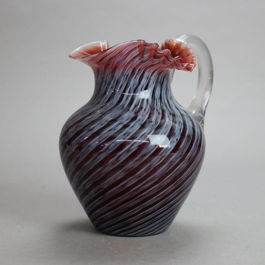 Antique Mt. Washington School Ruby & Opalescent Swirl Ruffle Top Glass Pitcher