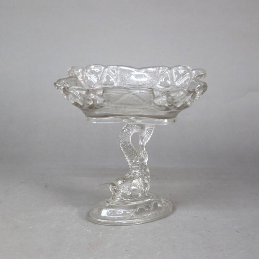 Antique Figural Dolphin Pressed Glass Compote C1930