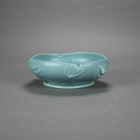 Roseville Blue Art Pottery Bowl with Teasel Pattern Mid 20thC