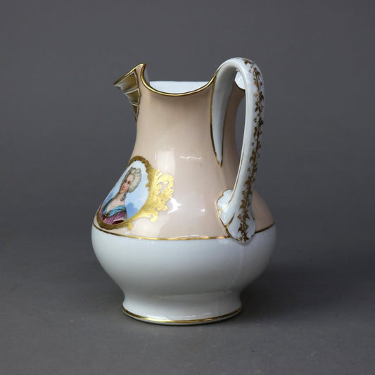 Antique Old Paris Porcelain Hand Painted & Gilt Portrait Pitcher c1890