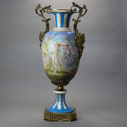 Antique Sevres Louis XIV Style Hand Painted & Gilt Porcelain Floor Urn C1890