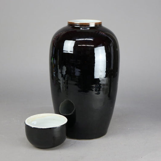 Large Antique Chinese High Glaze Black Pottery Temple Jar C1930