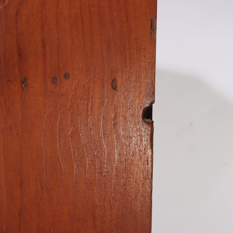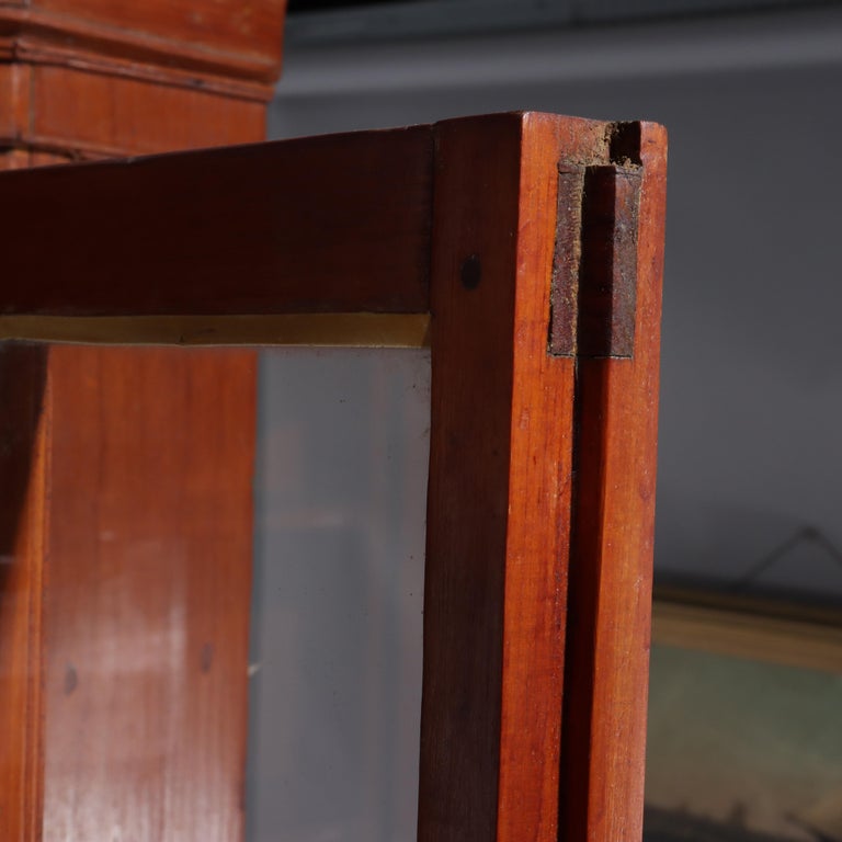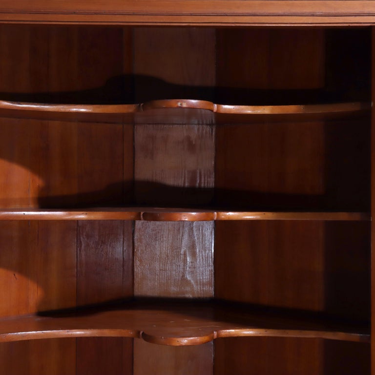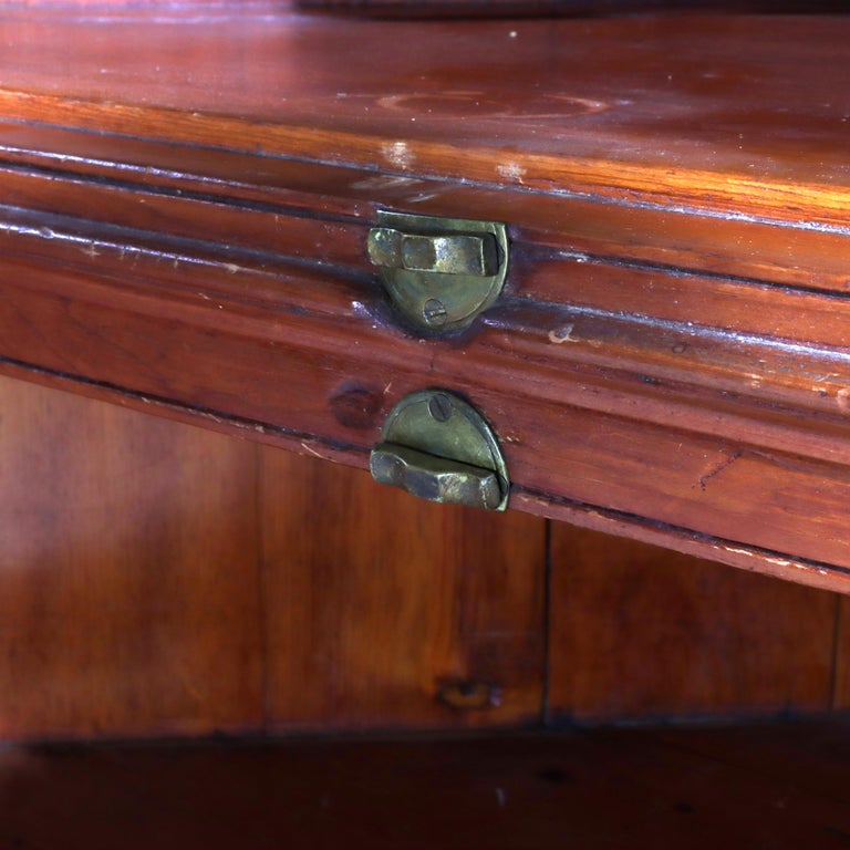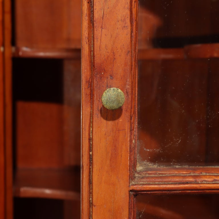 - A fine example of mid-19th century craftsmanship, this antique Boston Federal mahogany linen press features a classic design with two doors and four drawers. The piece showcases the rich, deep tones of mahogany wood. The Federal style is evident in its clean lines and elegant proportions. The linen press is ideal for storing linens or clothing, combining functionality with historical charm.