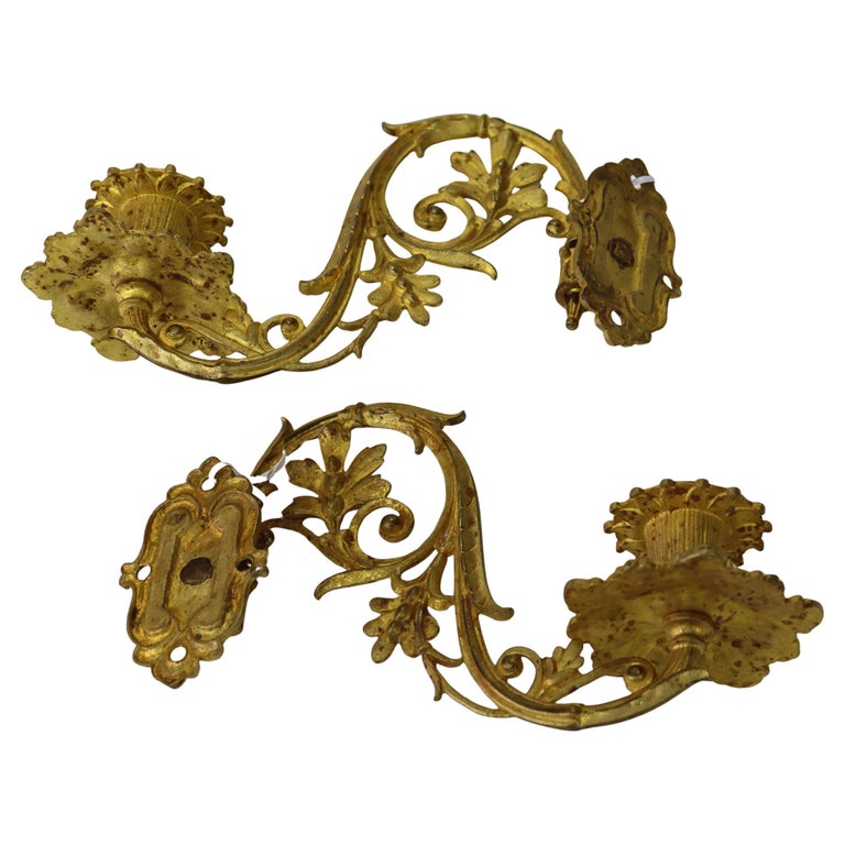 - A beautifully crafted antique French gilt bronze wall sconce from circa 1890. This elegant piece features intricate floral, foliate and scrollwork designs typical of the late 19th century. The sconce is designed to hold a single candle, adding a touch of historical charm and the craftsmanship reflects the high-quality standards of the period.