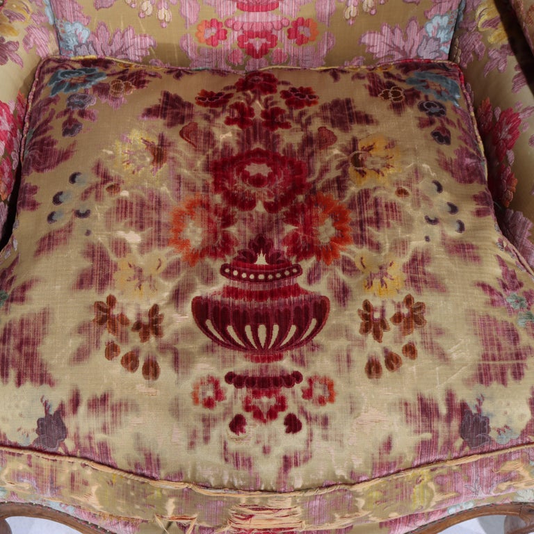 - Antique French Louis XIV Overstuffed Carved Walnut Armchair with Floral Upholstery 19thC.